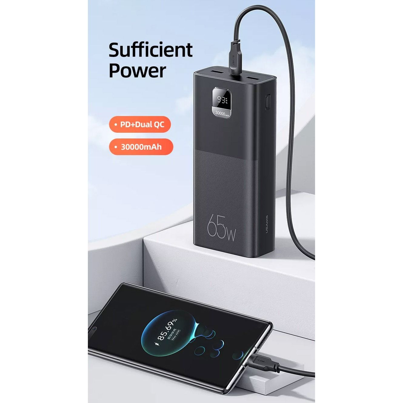 USAMS US-CD185 PB68 30000mAh 65W Black (ATXLOGTC01)